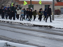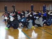 初めて冬季の避難訓練を実施しました。冬季といいながら、雪は降って欲しくなかったのですが、積雪あり降雪ありの状態での実施となりました。ただ、どんな天候でも緊急事態の時は避難しなければなりません。子供たちは、寒さを我慢しながらトレセンまで歩いて避難しました。