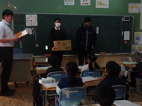 浜中町地域活動支援センターの方からクッキーの寄贈がありました。例年、タカナシ乳業から寄贈されたバターを使ってクッキーをつくり、町内の学校に寄贈する活動をされており、今年は茶内小学校が選ばれました。代表して1年生の教室へ来ていただき、一人一人に手渡ししてくださいました。2学期最後の日に素敵なクリスマスプレゼントをもらって子供たちも大喜びでした(^^)/ありがとうございました!