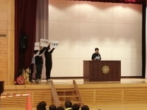 冬休み2日目(12月25日)、浜中町役場で、どさんこ☆浜中町子ども地区会議が開催されました。本校からは児童会を代表して2名の子が出席しました。今回は、本校の児童会の取組を紹介するコーナーもあり、代表の子が前に出て、児童会の取組を一生懸命説明しました。ありがとうの木の活動やいじめのない学校目指して頑張っている様子がよくわかる素敵な発表となりました。