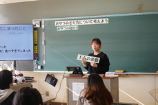 12月9日、5年生が浜中町の栄養教諭による食育授業を受けました。5年生のテーマは「おやつのとり方を考えよう」です。