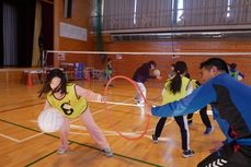 そこで、地域の方々をお招きし、「新バレーボール大会」を開催しました。考案したのは「ラリーバレー」「フラフープバレー」「カードバレー」の3つです。