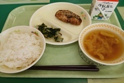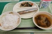 今日の給食は、「ごはん」「みそ汁」「焼き魚」「ごまあえ」「牛乳」でした。焼き魚は霧多布産のさんまが1尾ずつあたりました。脂ものっていておいしかったです。