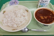 今日の給食は、「ハヤシライス」「ハスカップゼリー」「牛乳」です。浜中町の給食は、とてもおいしいですよ。そのおいしさが少しでも伝わればと思います。