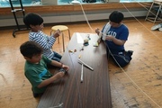 今日は縦割り班競技の全体練習の日でした。4チームに分かれ、高学年と低学年に分かれて競技をします。チームごとにペアや走順も含めて作戦を立てるところが肝となります。各チーム、いろいろと工夫していました。