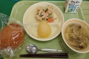 今日の給食は、「バターロール」「ブルーベリージャム」「白菜とベーコンのスープ」「ミートオムレツ」「タカナシの釧路・根室ヨーグルト」「牛乳」でした。ヨーグルトは程よい酸味とクリーミーさのバランスがとてもよく、おいしいです。白菜とベーコンのスープは、ベーコンの塩味がスープにとけ込んでいておいしかったですよ!