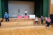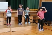 今日は学習発表会児童公開日でした。先週は欠席者も多く心配していましたが、今日は欠席者0、全員参加で行うことができました。今年の目玉の1つが縦割り班によるダンス発表。予想以上に出来が良く、見ていてとても楽しめ、感動しました。全校合唱も今までで1番声が出ていた気がします。欠席者が多い中での練習だったので、各学年・各班ともに大変だったと思いますが、内容はとても素晴らしかったです。本番まであと数日。体調に気を付けながら、最後の仕上げを頑張ってほしいです。写真は、各班のダンスの様子です。