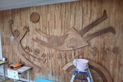 本校玄関より校舎内に入ると、正面に大きなレリーフがあります。実は近年、このレリーフにいろいろな掲示物が貼ってあったりして全貌が見えない状態でした。本校舎が建った時の記念レリーフであり、今年は開校100周年!ということで、先生方で掲示物を撤去しました。スッキリしました。現在、きれいにしているところです。