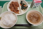 今日の給食は、「ごはん」「みそ汁」「ほえいとんのポークチャップ」「小松菜ともやしのあえ物」「牛乳」でした。トンタス浜中で飼養されているほえいとんだそうです。噛むと口の中に旨みが広がって、とてもおいしかったです。
