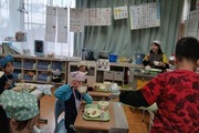今日はなかよし給食でした。なかよし給食とは、縦割り班ごとに異学年で食べる給食です。いつもと違う環境で食べる給食は、楽しかったかな?
