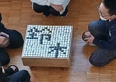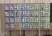 子どもたちに呼ばれてホールへ行ってみると、囲碁を使って模様や文字を表現していました。子どもたちは色々考えるものですね。また、いつものように校舎内を見て回っている際に階段の踊り場にあるステンドグラスに目をやると、なんと立体的な箇所が!今まで気づきませんでした。新たな発見があると、何か嬉しくなりますね。