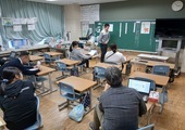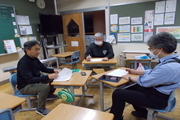 放課後の校内研修では、来月行われる研究授業の模擬授業が行われました。教師役と児童役に分かれて予定している授業を行ない、改善点がないか洗い出していきます。なぜか先生方の笑い声が響いていて、なんだか楽しそうでした。