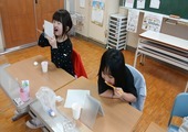 1年生でタブレット上でロイロノートの使っての授業が行われていました。ロイロノートとは、授業支援クラウドサービスで、児童が「カード」を使って考えをまとめたり、資料を共有したり、先生と双方向でやり取りしたりすることができ、思考力や表現力、主体的な学びを育むことができるツールです。 今回は1年生が国語の時間を使って、相手に気持ちを伝える文章をロイロノートで提出することにチャレンジしていましたよ。