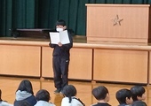 今朝は外一面が真っ白でしたね!週末の天候が心配です。学校の運営に影響がなければいいのですが・・・。さて、今日は児童朝会が行われました。各委員会から、取組の様子やお知らせ等が伝えられました。一生懸命準備をしてきた様子が伝わってきました。先生からの質問にもしっかりと答えることができました。そして、全校児童の聞く姿勢が素晴らしかった!しっかりと話をしている友だちの方を向いて聞くことができていましたよ。
