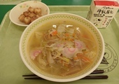 今日の給食は、「野菜たっぷり塩ラーメン」「ごま団子」「牛乳」でした。ラーメンは野菜がいっぱいで旨みも出ていて、おいしかったです。