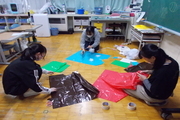 今日はクラブ活動が行われました。写真は文化クラブの活動の様子です。毛糸?刺繡糸?を使って何かを作っているようですが、何を作っているのかな?