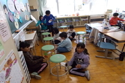 高学年による1年生のお世話の一コマです。1年生が少しでも早く学校になれるよう、工夫しながら1年生にかかわってくれています。
