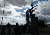 PTA秋の環境整備作業終了後、その場にいたお父さん方で、体育館前にある風見鶏を修繕していただきました。長年の経過により風見鶏が動かなくなっていました。ねじを外し、締め直し、油を差していただいたことで、今では風向きに合わせてスムーズに動くようになりました。驚いたのは、脚立も使わずに風見鶏の台に身軽にのぼった姿でした。すごい!