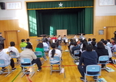 今日は、新1年生の体験入学と保護者説明会が行われました。子どもたちは1・2年生と一緒に体育館でしっぽ取りゲームなどをして遊びました。町内の保育所の先生方も様子を見に来てくれました。1年生が園児に対し、お兄さん・お姉さん的な行動をとっている姿に成長を感じました。音楽室では保護者向けの説明会を行いました。来年度は12名の子どもたちが入学する予定です。