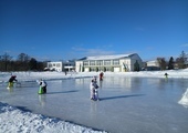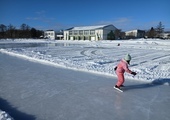 今日は、3・4年生のスケート授業が行われていました。風が吹くと肌寒かったですが、子どもたちは元気にリンクを滑っていました。スケート靴も上手にはけていました。