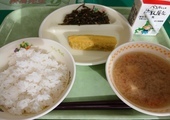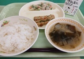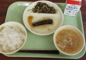 今日の給食は、「ごはん」「みそ汁」「ちくわの磯辺揚げ」「ブロッコリーとツナのサラダ」「牛乳」でした。この歳になると、不思議とジャガイモのみそ汁がおいしくてたまりません。寒い日が続いているので、体も温まります。