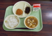 今日の給食は、「ごはん」「みそ汁」「ハンバーグ野菜あんかけ」「牛乳」でした。野菜あんかけはこの時期とても体が温まってよりおいしく感じますね。