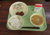 今日の給食は、「ごはん」「みそ汁」「和風肉だんご」「ごぼうサラダ」「牛乳」でした。和風肉だんごは旨みが閉じ込められていて、口の中に入れるとその旨みが広がりとてもおいしかったです。
