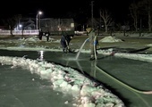 PTA施設部の皆さんを中心に、リンクの基礎氷作りがスタートしました。重機などを使った本格的なリンク作りです。今朝は冷え込んだため、昨晩から水撒きをスタートしました。今朝は結構いい感じで氷が張り始めました。また、雪を集めてすべり台も作っていただきましたよ。子どもたちは楽しいそうにあそんでいました。